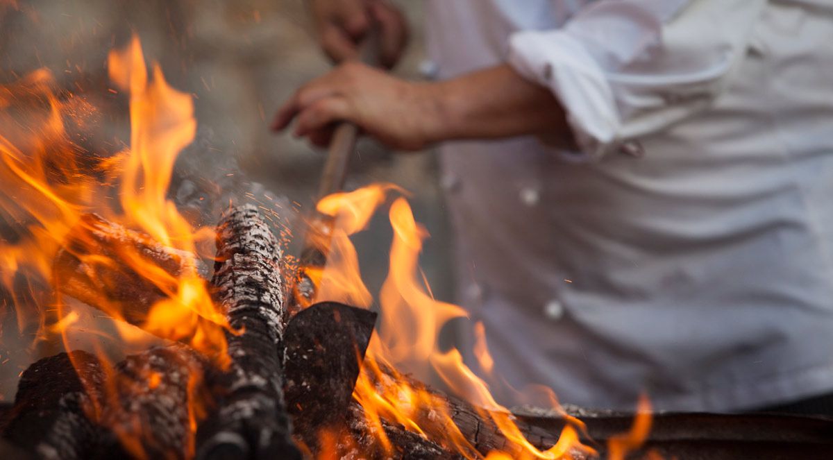 Cena barbacoa con ensaladas, embutidos ibéricos, queso, aperitivos, gazpacho, ahumados. hamburguesas, pincho de lechazo, churrasco de ternera, alitas de pollo, chorizo , morcilla y patatas asadas y vino Crianza Arzuaga. Despues música y copas en los jardines del hotel. Opcional proyección en pantalla gigante de un clásico del cine